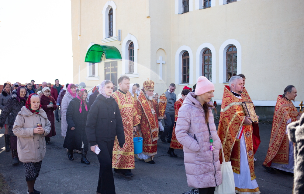Его преосвященству сослужили: секретарь Туровской епархии иерей Игорь Скребейко,  благочинный Калинковичского округа, настоятель храма святых благоверных Петра и Февронии Муромских в г. Калинковичи иерей Сергий Карпович, настоятель храма святого Архангела Михаила в д. Рудня Антоновская Калинковичского района иерей Дмитрий Домасевич, клирики собора Казанской иконы Божией Матери г.Калинковичи иерей Кирилл Лешкевич и иерей Владислав Стасенко.