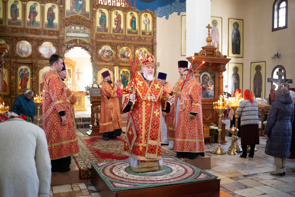 Епископ Леонид поздравил духовенство и прихожан собора с праздником Воскресения Христова и обратился к молящимся со словом назидания.
