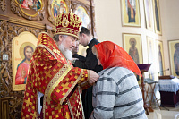 В завершение Его Преосвященство поздравил причастников с принятием Святых Христовых Таин и преподал всем архипастырское благословение.