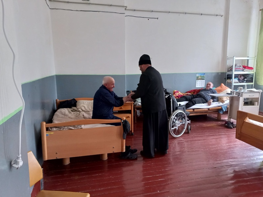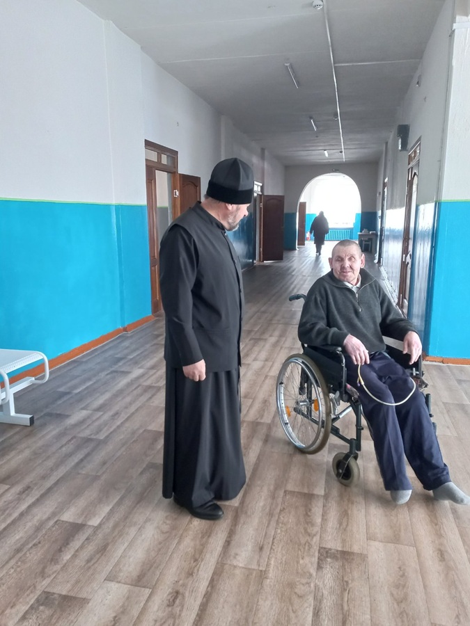 Протоиерей Анатолий поздравил проживающих там людей и медицинский персонал со Светлым Воскресением Христовым.
