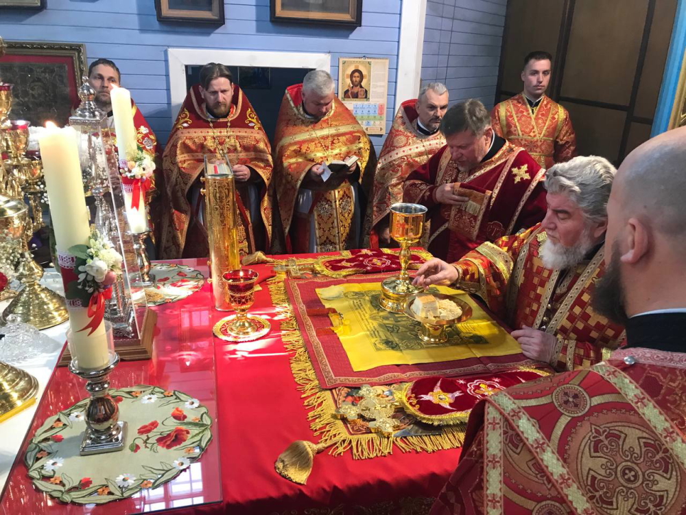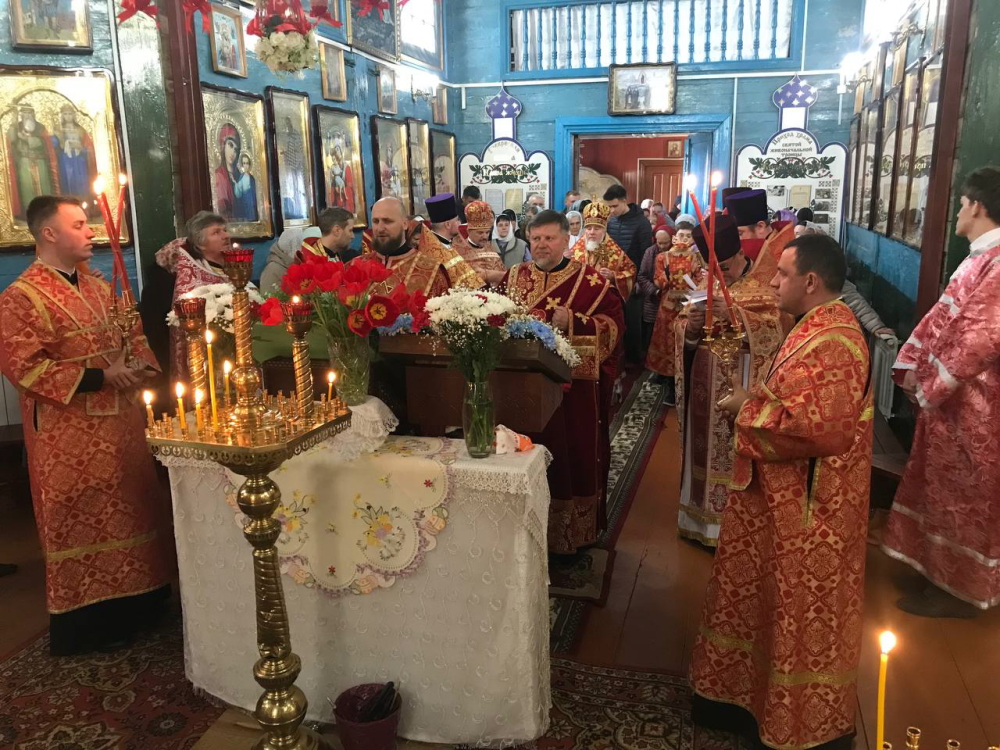 Архипастырю сослужили: благочинный Полесского округа, настоятель прихода храма преподобного Сергия Радонежского в г. Мозыре протоиерей Геннадий Нестереня; настоятель прихода храма в честь иконы Божией Матери «Умиление» в д. Васьковка Мозырского района протоиерей Симеон Тур; настоятель прихода храма Святой Живоначальной Троицы в г. Ельске протоиерей Георгий Пиголь; настоятель прихода храма святого апостола Иоанна Богослова в г. Наровля иерей  Дмитрий Гулюта; настоятель прихода храма святых мучениц Веры, Надежды, Любови и матери их Софии в городе Мозыре иерей Василий Бондарчук; секретарь Туровской епархии иерей Игорь Скребейко; настоятель прихода храма святого великомученика Дмитрия Солунского в аг. Скородное Ельского района иерей Виктор Васюкович; настоятель прихода храма святого Архангела Михаила в аг. Рудня Мозырского района иерей Владимир Борисенко и настоятель прихода храма Нерукотворного Образа Господня в аг. Заширье Ельского района иерей Валерий Сидько.